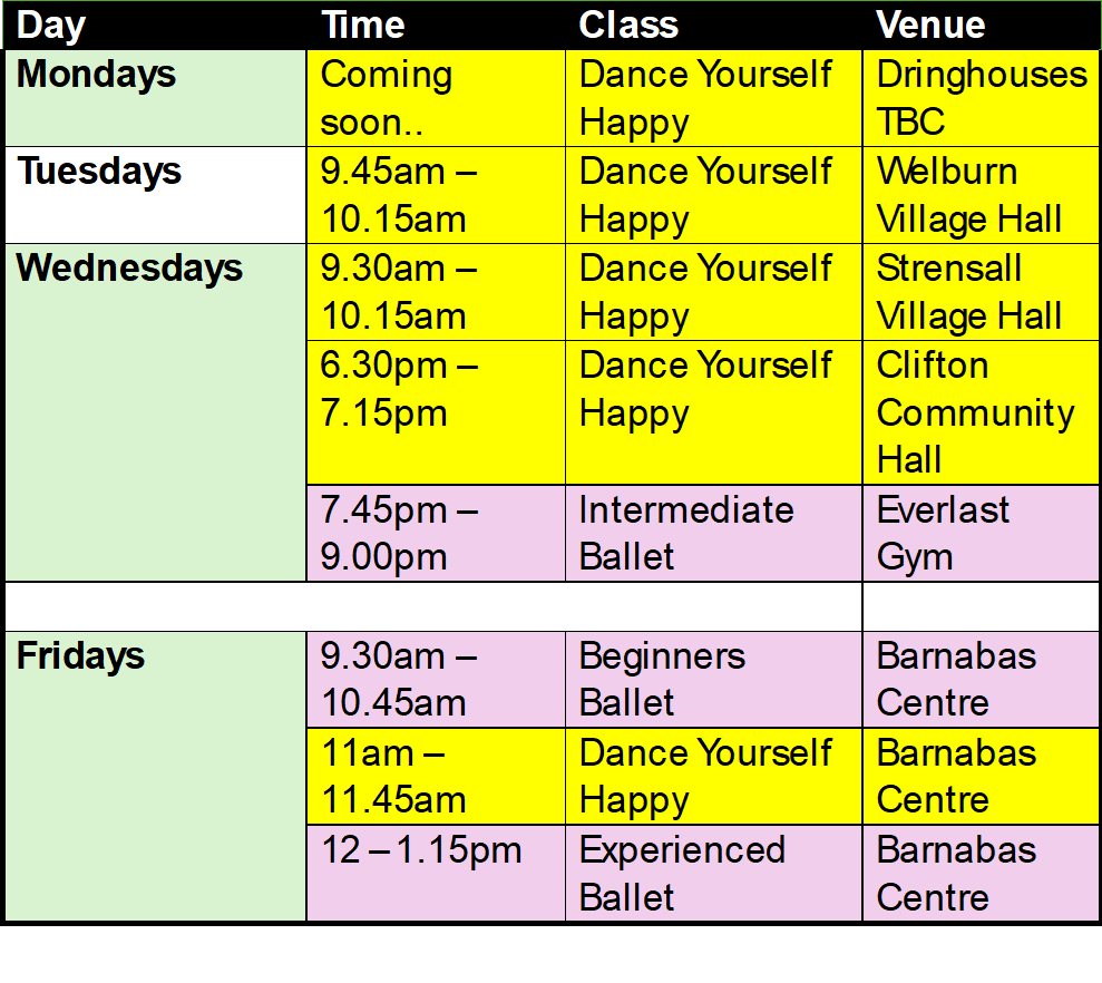 Exciting news! During 2026, I will be expanding my Dance Yourself Happy classes to cover all areas of York and adding a beginners ballet class.